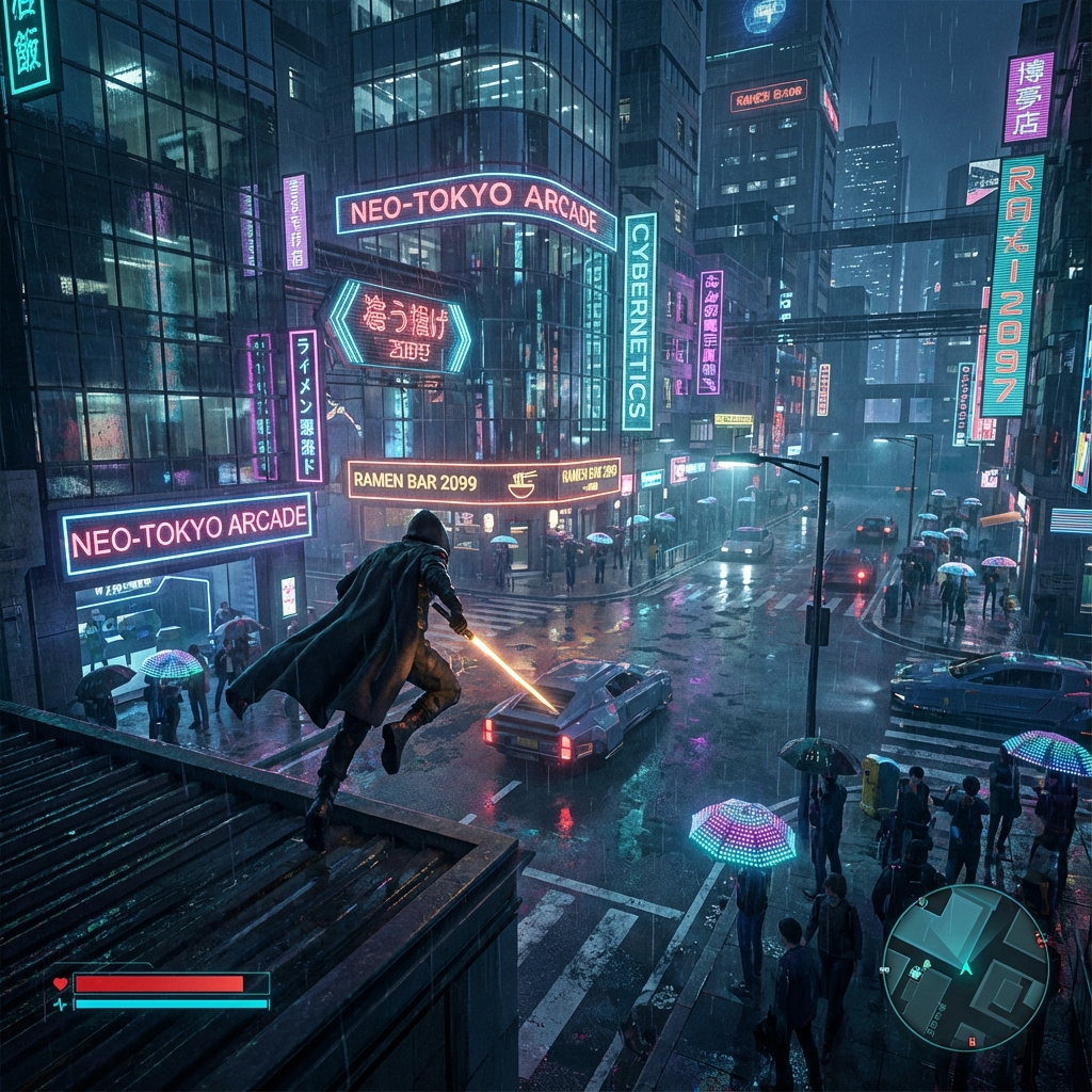 Navigate the neon-drenched streets of Neo-Tokyo in this high-octane cyberpunk thriller. Customize your cybernetics, hack into corporate mainframes, and uncover a conspiracy that threatens the very fabric of reality.